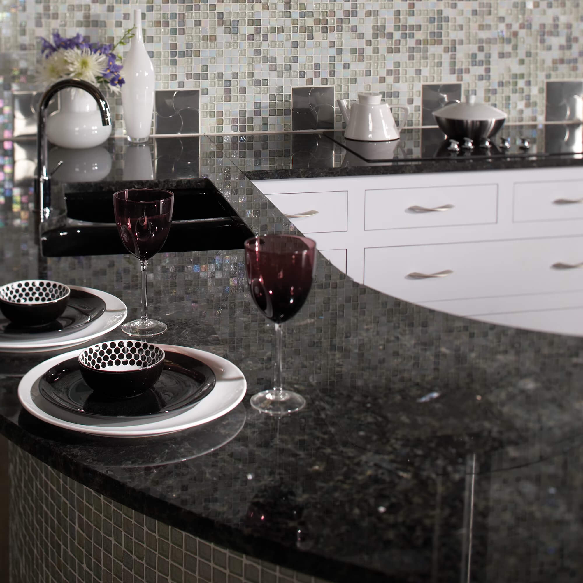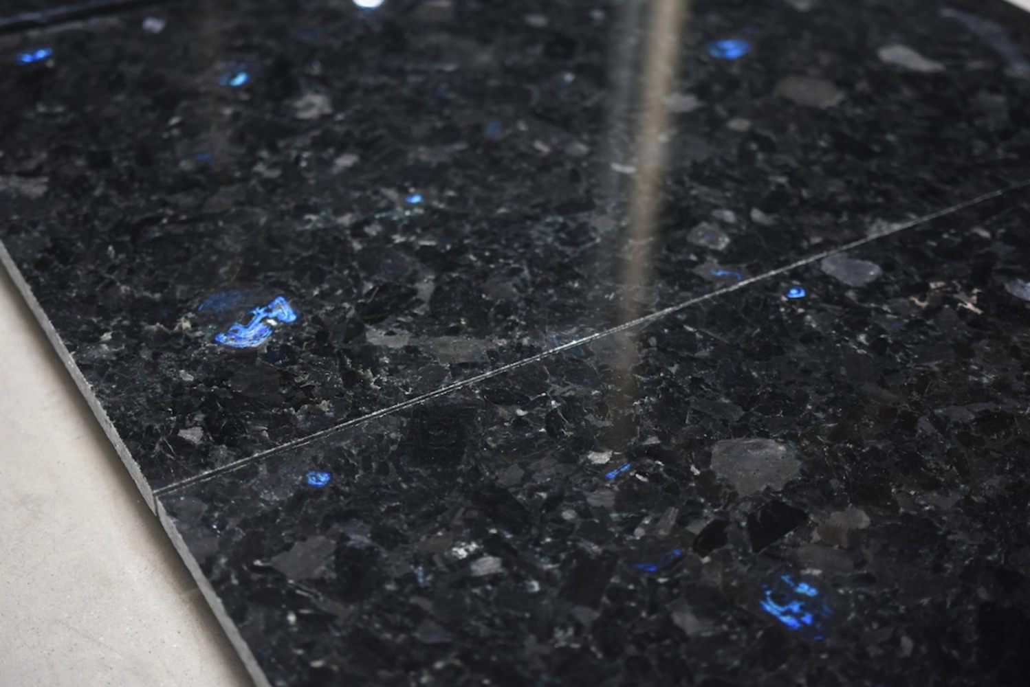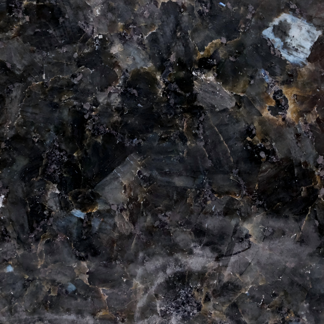 Volga Blue, also known as Blue Polar Granite, boasts a striking fusion of deep blue, silver, and gray hues. Its surface shimmers with iridescent mineral deposits, reminiscent of stars in the night sky, infusing spaces with a cosmic allure.